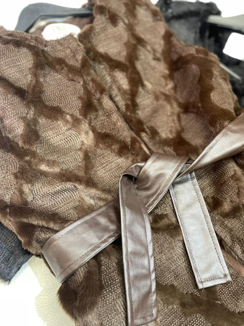 وست پاییزه طرح پوست همراه با کمربند چرمی